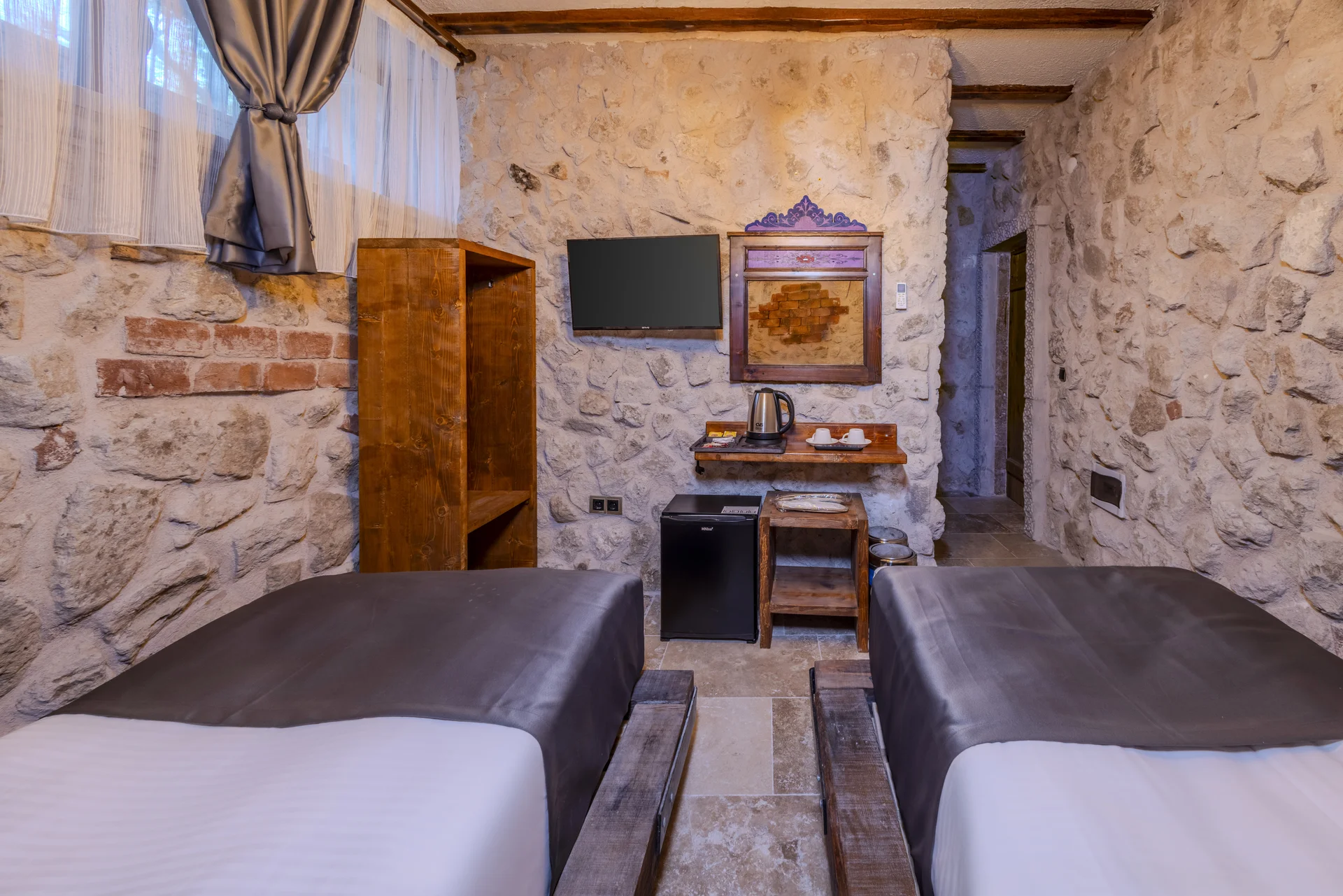 A unique experience in a traditional stone room, offering a quiet and intimate atmosphere perfect for solo travelers. Located within the natural beauty of Cappadocia, this room combines rustic charm with modern comfort.