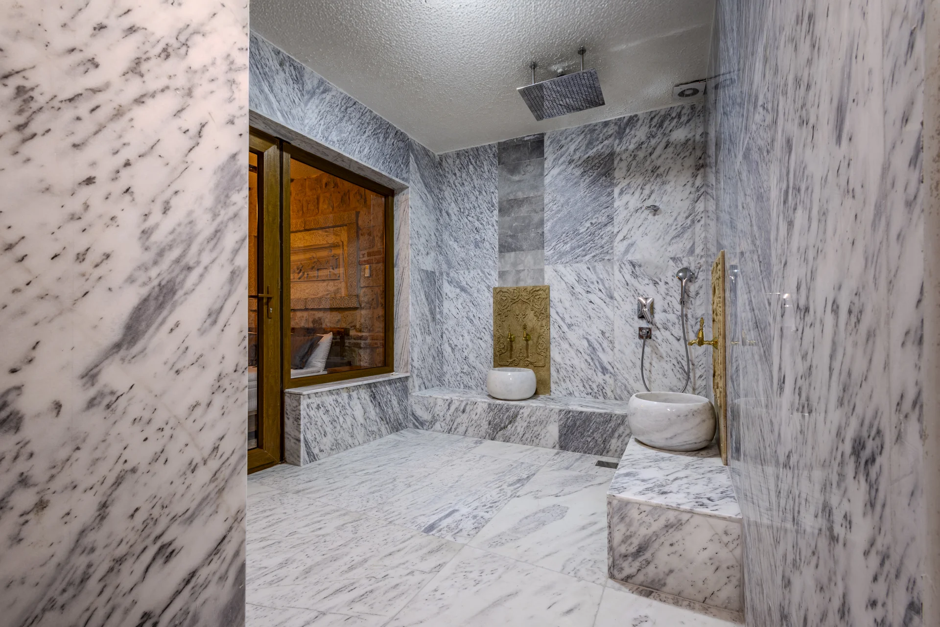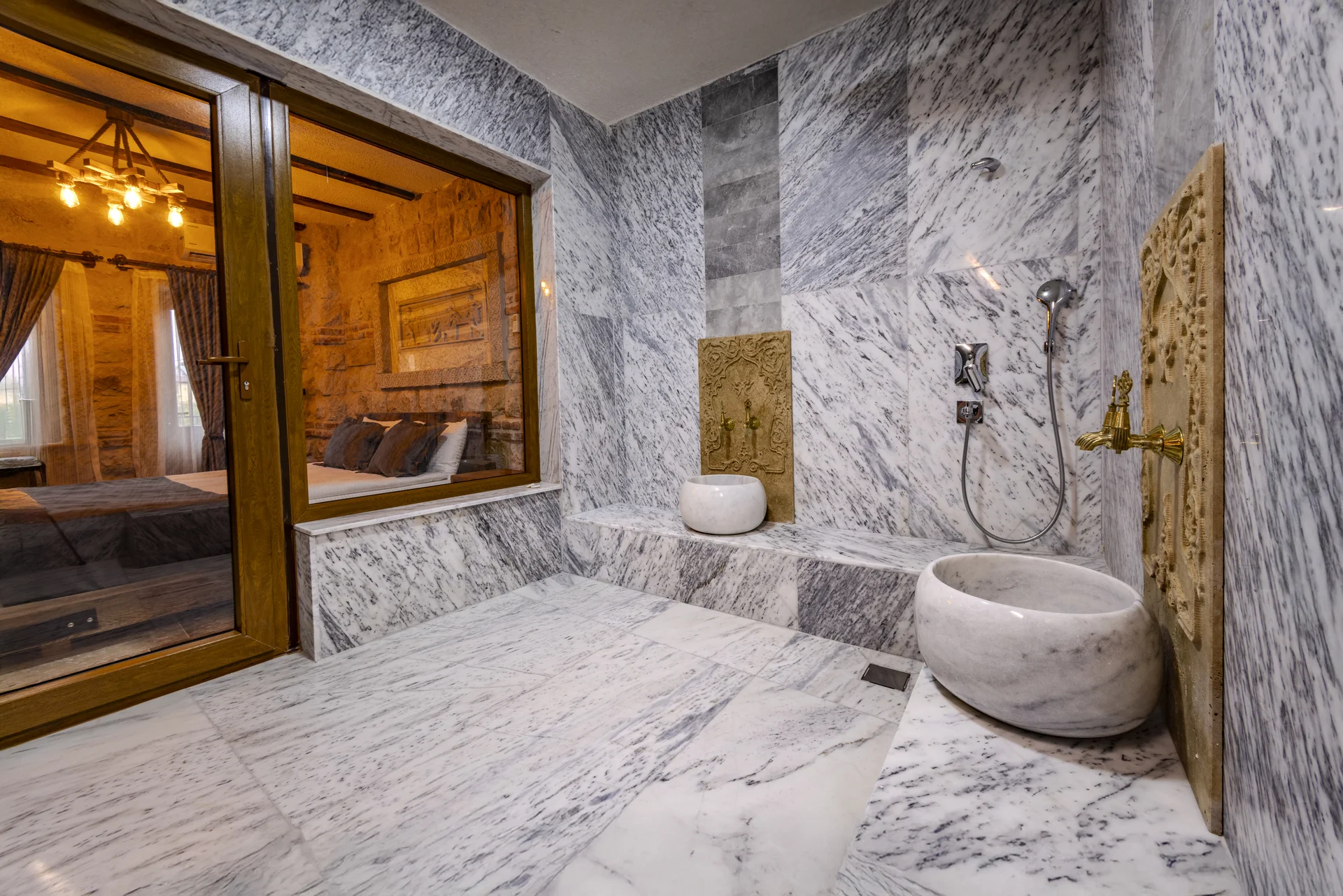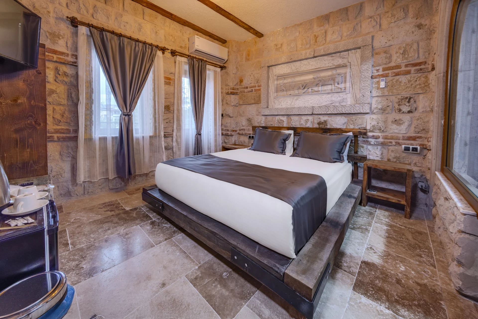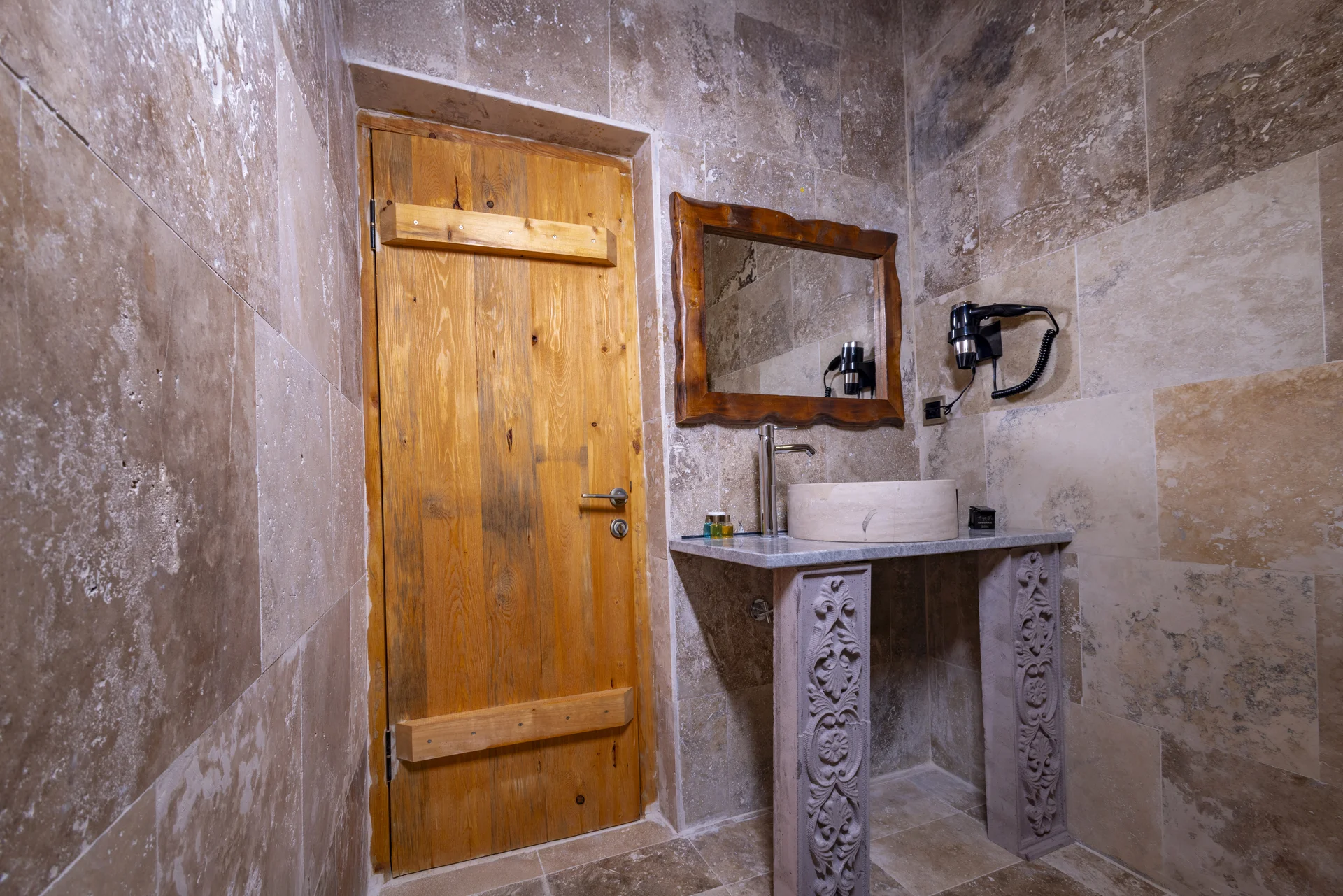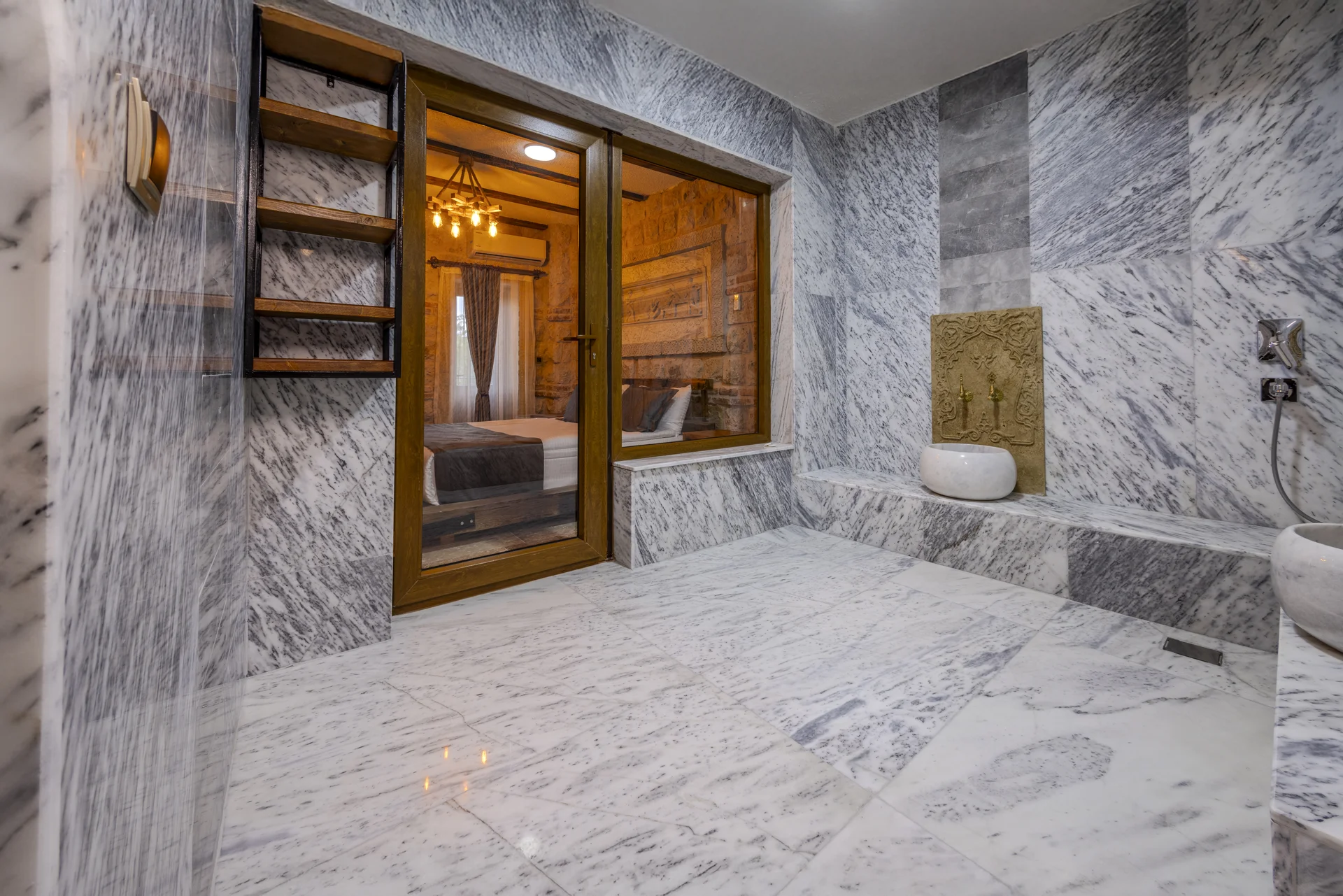 This spacious room features a luxurious jacuzzi for you to unwind and relax while enjoying the beautiful views of Cappadocia. A perfect escape for couples looking for relaxation and comfort in a cozy yet elegant setting.