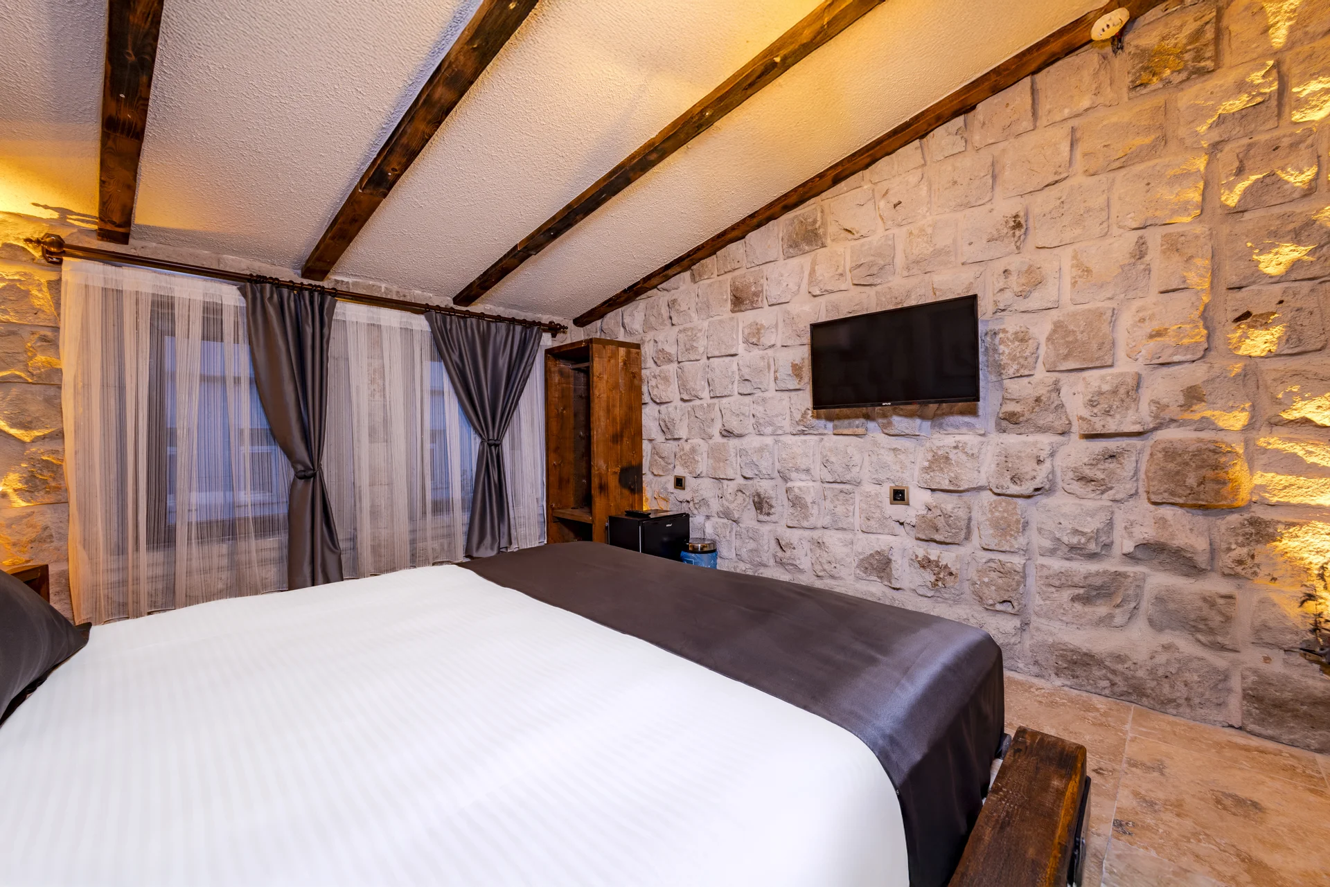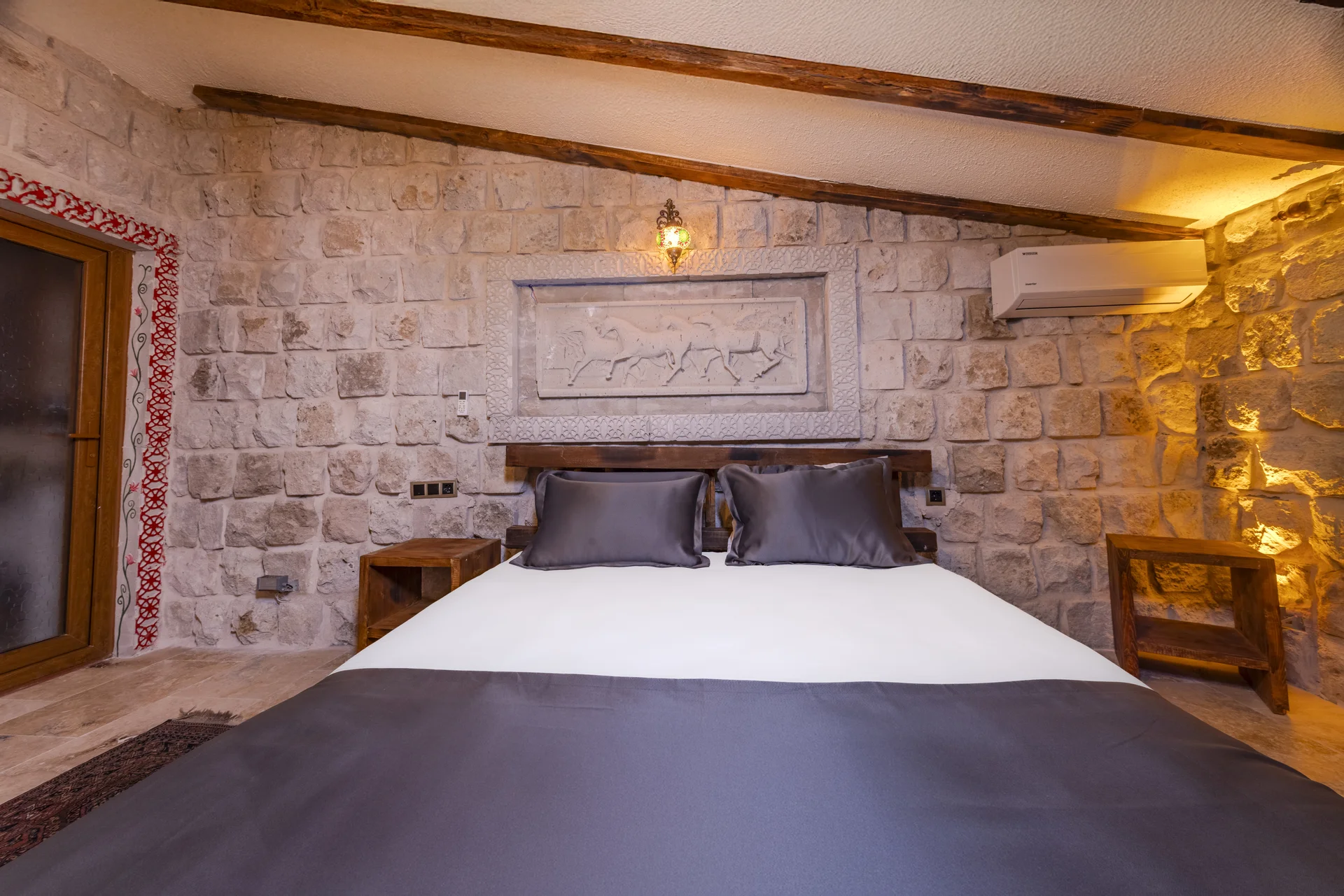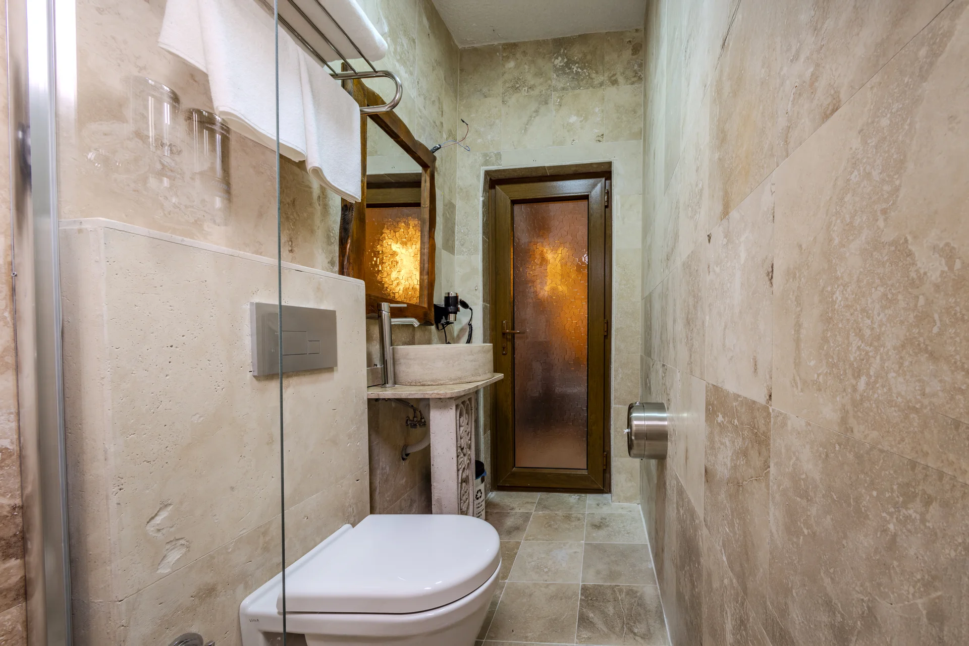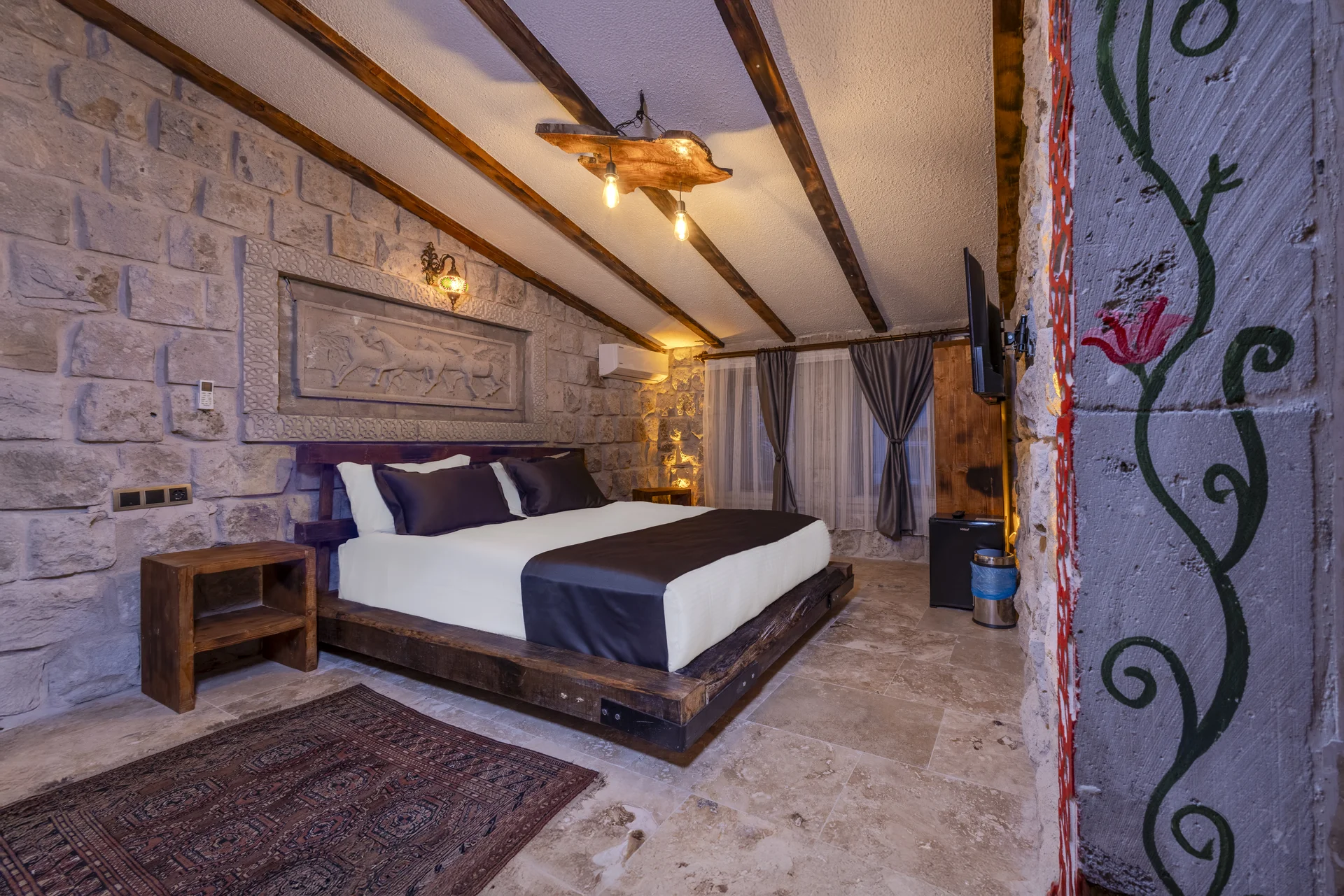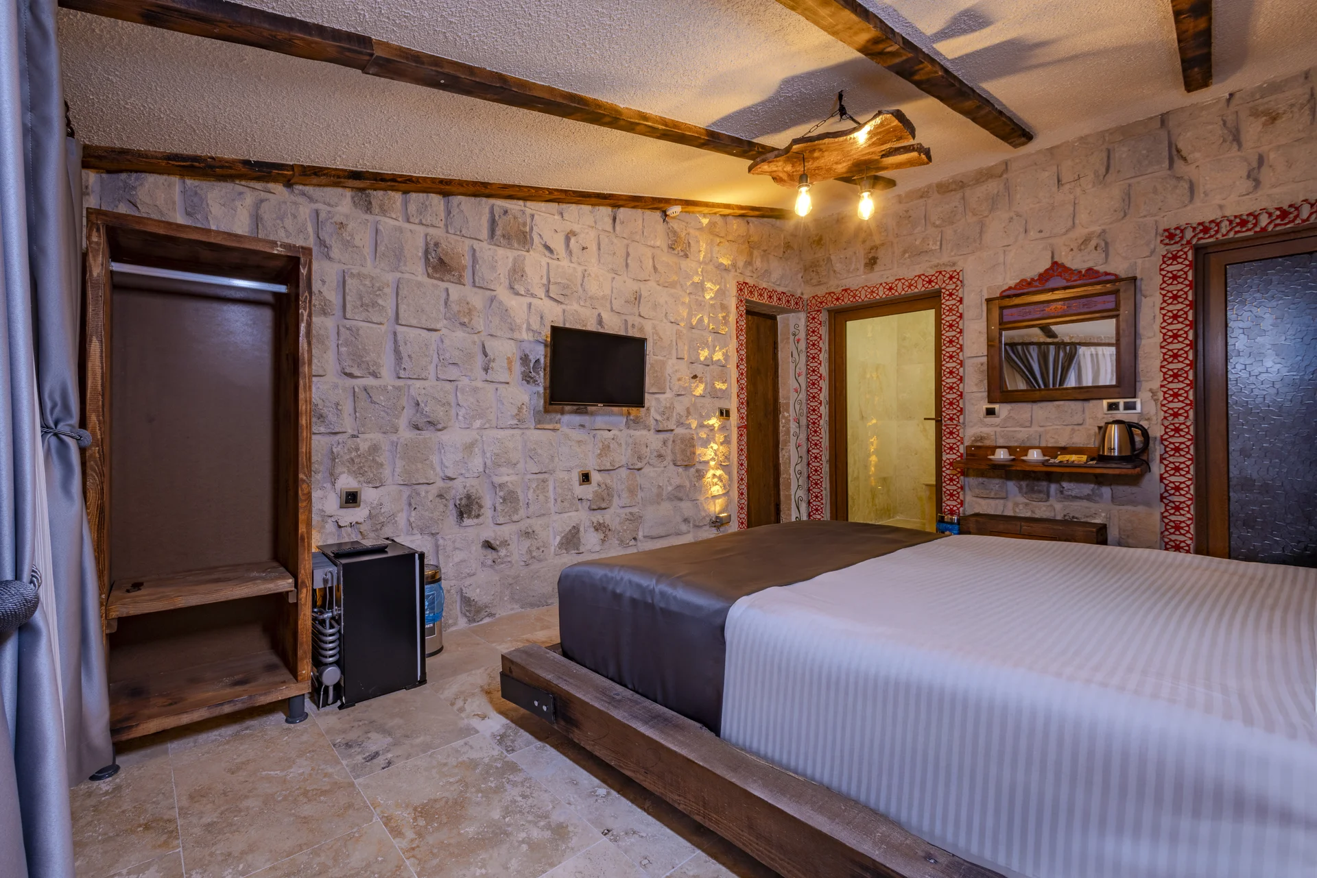 Experience the charm of Cappadocia with this cave-style room featuring a luxurious bathtub. Enjoy a relaxing soak after a day of exploring the region's stunning landscapes. A peaceful haven for those who appreciate rustic elegance and comfort.