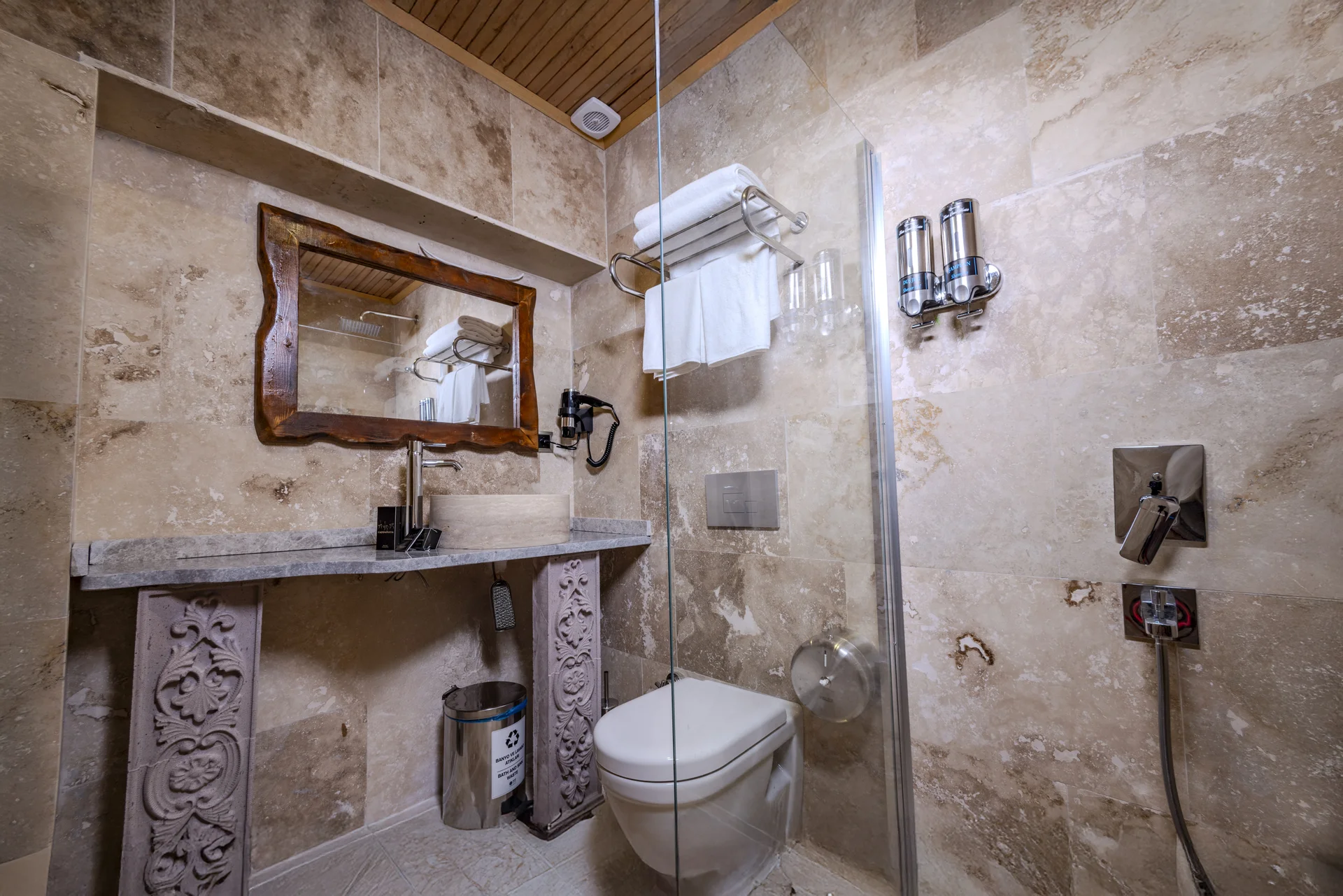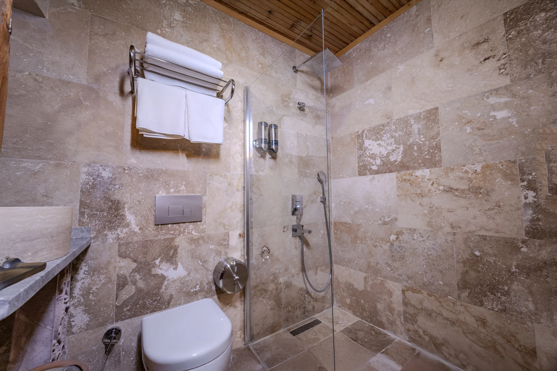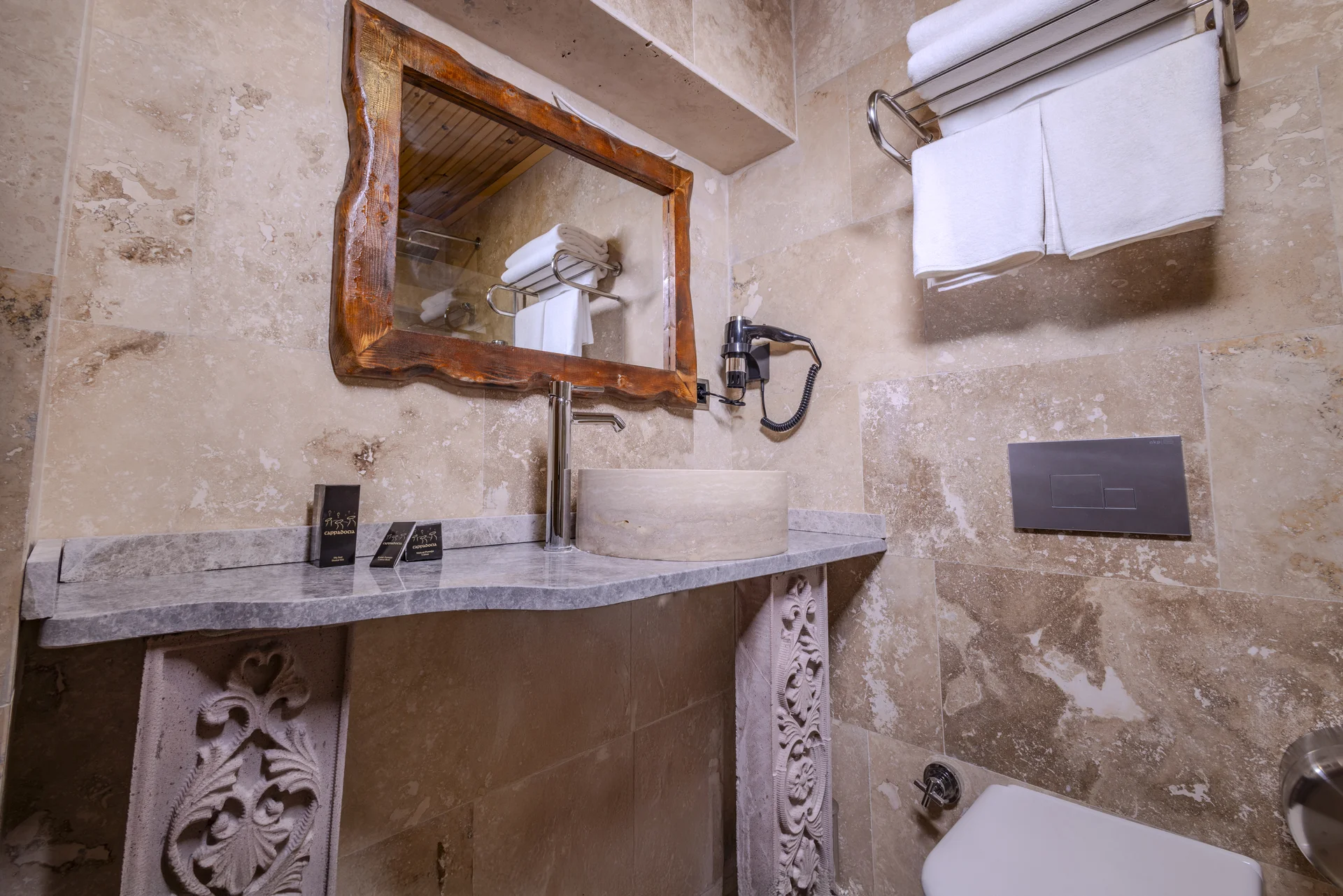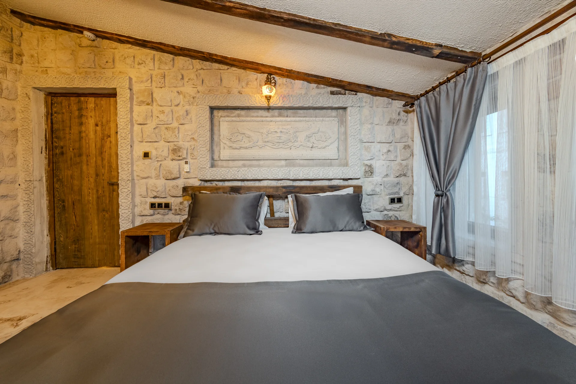 A unique cave room with its own private jacuzzi, perfect for unwinding after a long day of sightseeing in Cappadocia. The combination of rustic stone architecture and modern luxury creates an unforgettable stay.